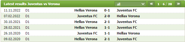 Lịch sử thi đấu của Juventus vs Verona
