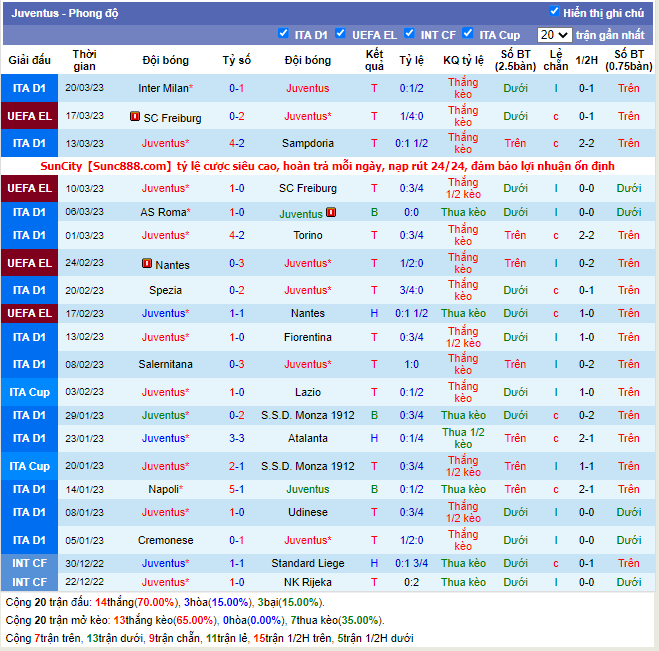 -Phong độ Juventus