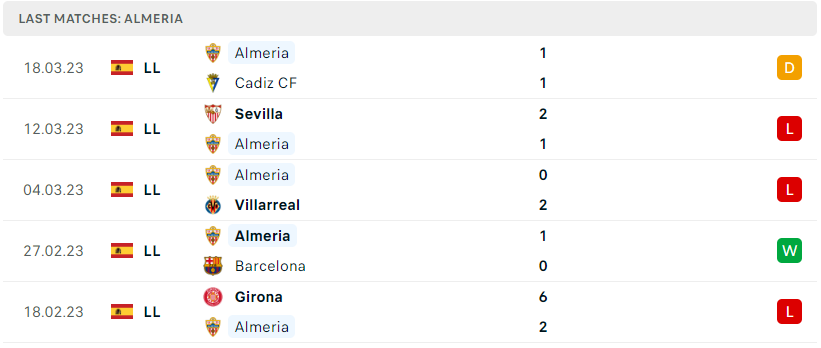 Phong độ của Almeria