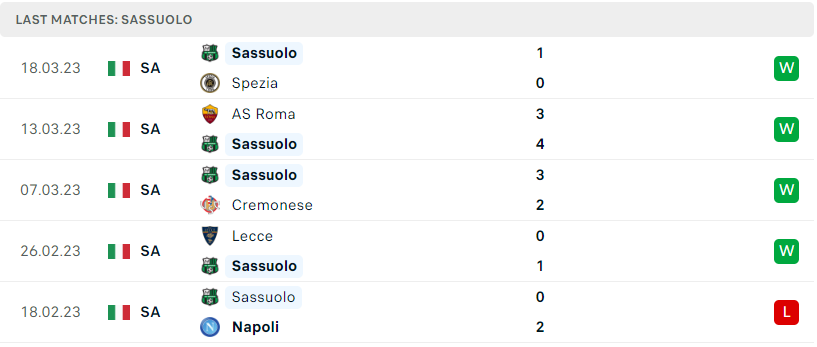 Phong độ của Sassuolo