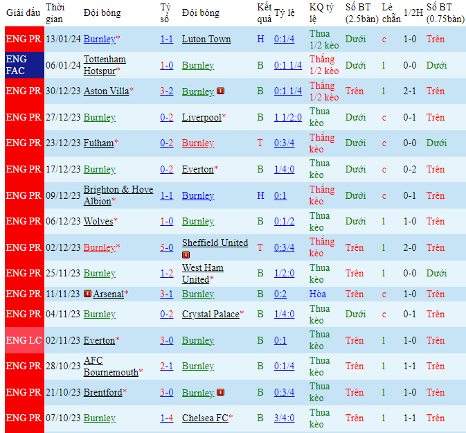 Trong khi đó với Burnley, binh đoàn chủ nhà thì vẫn như thường lệ đang gặp khó trong việc tìm ra sự hiệu quả trong lối chơi của họ. Chỉ có được 1 điểm trong trận chung kết ngược trước Luton Town và xa hơn là những khó khăn từ chuỗi trận nhạt nhòa. Có quá nhiều mối lo mà Burnley đang phải đối mặt khi mà vị trí áp chót trên BXH với vỏn vẹn 12 điểm là một thách thức với họ. Burnley hiện đang kém nhóm an toàn đến 5 điểm và tiếp đón Fulham vẫn có thể là một khó khăn với họ. Màn so tài sẽ là một thế trận có phần giằng co mà hai đội có thể tạo ra, khả năng nổ tài cũng vì thế mà trở nên khá bỏ ngõ.