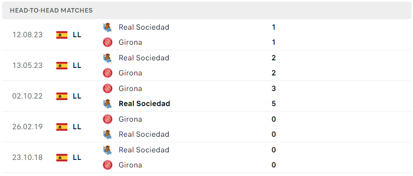 Nên nhớ, trong trận đấu ở lượt đi dù phải hành quân đến sân của Sociedad nhưng Girona vẫn xuất sắc mang về 1 điểm. Trong màn tái đấu này mọi thứ sẽ không còn đơn giản dành cho Real Sociedad khi bởi lẽ Girona vẫn đang thi đấu cực kỳ thăng hoa vào lúc này. Sức mạnh sân nhà cùng với lối đá máu lửa sẽ giúp đội chủ nhà hạn chế tối đa sức mạnh của đối thủ và từ đó giữ lại điểm số.