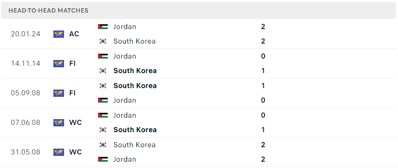 Thành tích đối đầu của Jordan vs Hàn Quốc