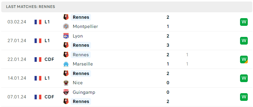 Phong độ của Rennes