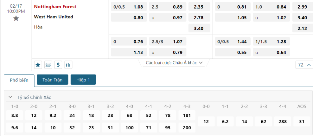 Kèo Châu Âu vẫn đang là sự nhỉnh hơn dành cho Nottingham, khi mức ăn của họ là 2.35 trong khi con số này của vị khách là 2.78. Mặc dù vậy, nhưng trong một thời điểm mà cả West Ham lẫn Nottingham đều suy yếu thì rõ ràng mọi kịch bản hoàn toàn có thể xảy ra. Những sự tự tin có được sẽ mở ra một thắng lợi dành cho The Hammers trong chuyến đi này.
