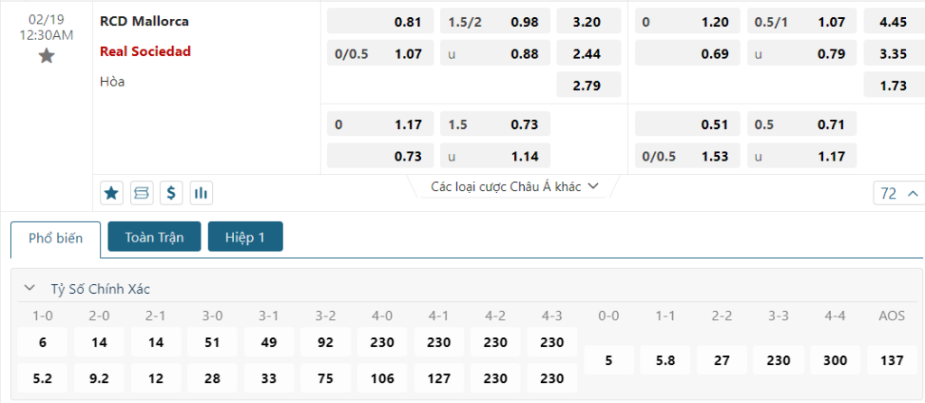 Soi kèo tỉ số Mallorca vs Real Sociedad