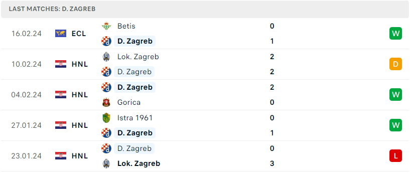 Thắng lợi trước Betis vừa qua một lần nữa đã cho chứng minh được sức mạnh của D. Zagreb vào thời điểm này, đại diện Croatia vẫn đang thi đấu một cách đầy ổn định trên mọi mặt trận mà họ đang tham dự. Thống kê cho thấy, trong 10 trận đấu gần nhất thì binh đoàn Nenad Bjelica đã thắng đến 8 và hòa 1. Dẫu sao thì Zagreb vẫn luôn được đánh giá là một ẩn số đầy khó lường tại cup Châu Âu và với phong độ và sự thăng hoa ở hiện tại thì họ hoàn toàn có thể tiếp tục gây bất ngờ trước Real Betis.