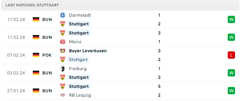 Lịch sử thi đấu vẫn đang ghi nhận là sự áp đảo hoàn toàn dành cho Stuttgart, khi họ đã đến 4 lần giành thắng lợi trong 5 lần đụng độ gần nhất. Một thời điểm mà Stuttgart vẫn đang thi đấu cực bay và chưa có bất kỳ sự trục trặc nào, ngược lại FC Koln lại đang gặp phải quá nhiều vấn đề. Chính vì thế, sẽ chẳng có bất kỳ bất ngờ nào xảy đến trong trận đấu sắp tới và 3 điểm sẽ nằm gọn trong tay đội chủ nhà.