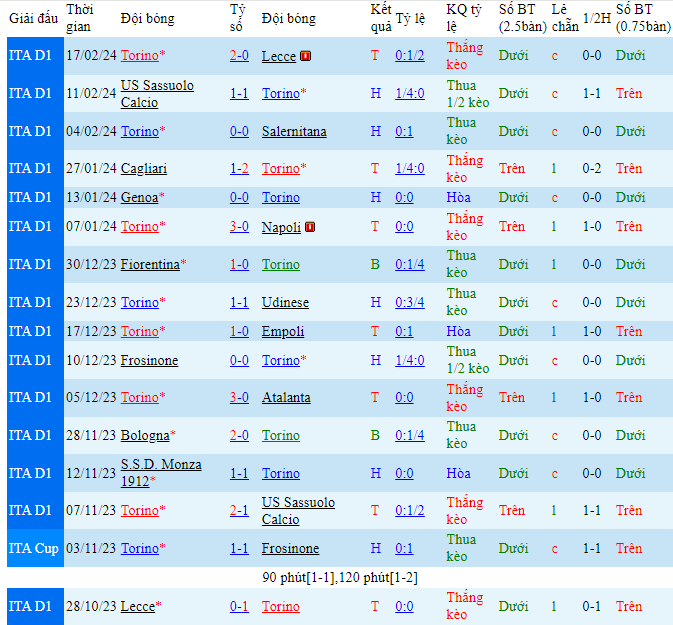 • Chọn Torino +0.25 HT