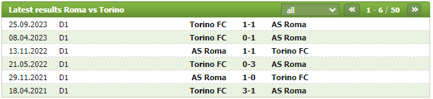 Lịch sử thi đấu của AS Roma vs Torino