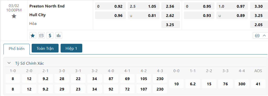 Kèo Châu Âu đang là sự nhỉnh hơn đôi chút dành cho Preston do đang nắm giữ lợi thế sân nhà. Trong một thời điểm mà cả phong độ lẫn sự tự tin đang quay trở lại với đoàn quân Simon Grayson thì tin chắc rằng họ vẫn sẽ có đủ khả năng để phục thù Hull City. Đặc biệt là khi, The Invincibles cũng đang rất quyết tâm khi họ chỉ còn kém điểm hạng của đối thủ đúng 1 trận thắng.