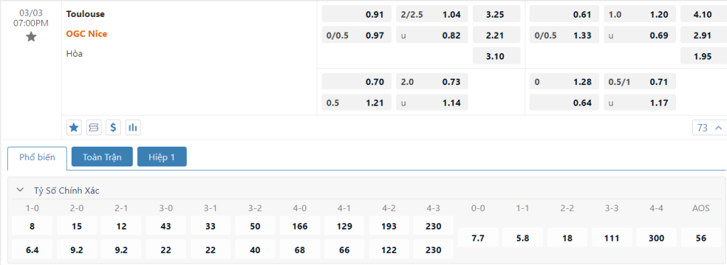 Soi kèo tỉ số Toulouse vs Nice