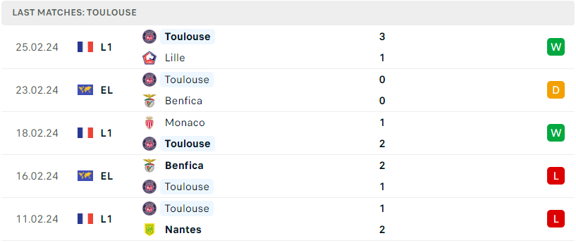 Thành tích đối đầu của Toulouse vs Nice