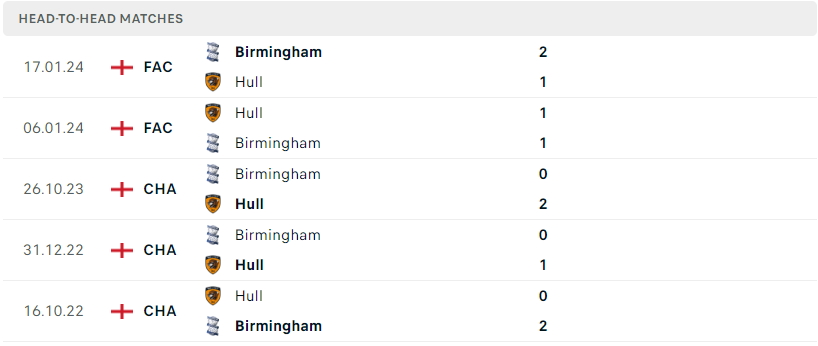 Mặc dù để thua tại FA Cup nhưng trong trận đấu ở lượt đi Hull City cũng đã dễ dàng vượt qua Birmingham ngay tại chính sân nhà của đối thủ với tỉ số 2-0. Một kết quả đủ để thấy sự lấn áp của bầy Hổ so với chính đối thủ ở hiện tại, trong một thời điểm mà Birmingham đang gặp quá nhiều vấn đề, thì rõ ràng việc phải làm khách và đụng độ Hull sẽ càng trở nên khó khăn hơn. Lối chơi vượt trội sẽ mở ra 3 điểm dành cho The Tigers.