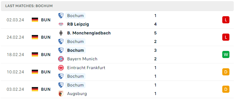 Sau chiến thắng không tưởng trước Bayern Munich tại vòng 22, Bochum đã bị đưa trở lại mặt đất bởi 2 thất bại liên tiếp trước Monchengladbach và RB Leipzig. Mặc dù vậy, nhưng những đối thủ này đều không phải dạng vừa và việc Bochum phải ôm hận cũng là điều dễ hiểu. Hiện đoàn quân Thomas Letsch đã leo lên vị trí thứ 15 trên BXH, hơn nhóm xuống hạng đến 8 điểm, một khoảng cách đủ lớn. Thế nhưng, tập thể vùng Arnsberg cũng không được phép chủ quan.