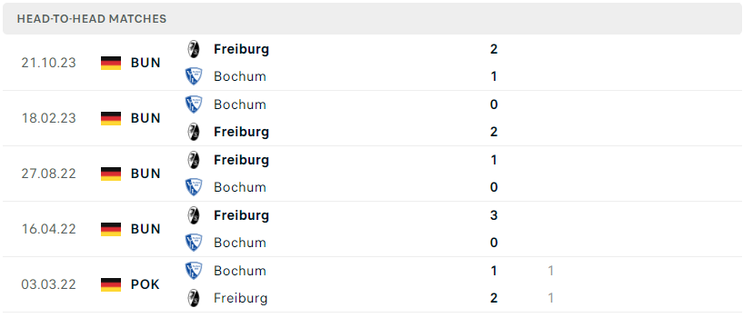 Thành tích đối đầu của Bochum vs Freiburg