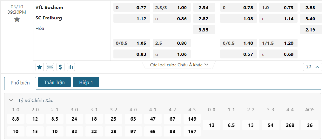 Kèo Châu Âu vẫn đang là sự nhỉnh hơn đôi chút dành cho Bochum, điều này là hoàn toàn hợp lý, khi sở dĩ nếu xét về phong độ vào lúc này thì tập thể vùng Arnsberg hoàn toàn ăn đứt các vị khách. Chưa nói, họ còn đang chơi cực bay trên sân nhà và một Freiburg vừa trở về từ cup C2 cũng sẽ không còn đủ sự xung mãn để gây ra quá nhiều khó khăn cho Bochum.