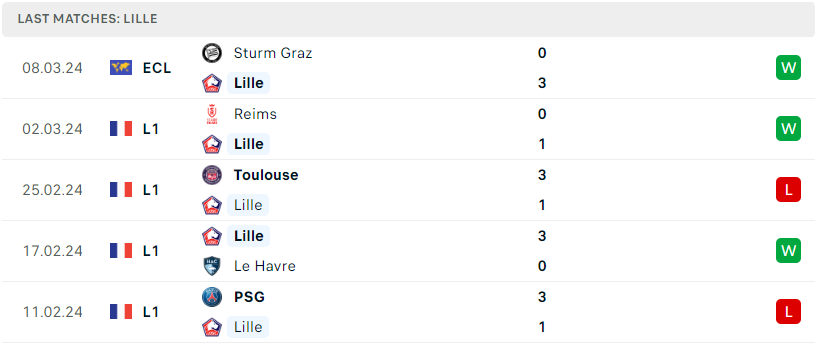 Dù đã có đôi chút những cập rập ở đầu tháng 2, tuy nhiên với bản lĩnh cùng đẳng cấp vốn có thì Lille cũng đã sớm tìm lại sự ổn định vốn có. Thống kê cho thấy, trong 4 trận đấu gần nhất thuộc 2 mặt trận thì thầy trò Paulo Fonseca đã mang về đến 3 chiến thắng. Lối chơi hiệu quả và đầy tính kỷ luật đang biến đại diện nước Pháp trở thành một trong những ứng viên tiềm năng tại Conference League năm nay. Chỉ cần một kết quả thuận lợi trong trận đấu lượt về sắp tới là đủ để họ có mặt tại tứ kết.
