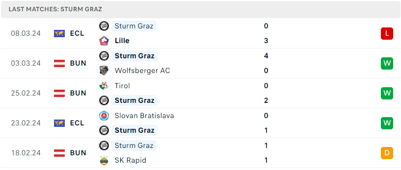 Lille hiện đang nắm giữ lợi thế cực lớn trong cặp đấu với Sturm Graz tại vòng 1/8 Conference League, khi đại diện Ligue 1 đã dễ dàng giành thắng lợi với tỉ số 3-0 ngay trên sân khách ở lượt đi. Cơ hội giành vé vào tứ kết của đoàn quân Paulo Fonseca là rất lớn, màn tái đấu vào giữa tuần sẽ là cơ hội để họ tiếp tục thị uy sức mạnh và tiến thêm một bước nữa trên hành trình này.