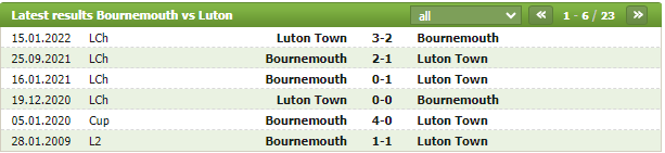 Lịch sử thi đấu của Bournemouth vs Luton Town