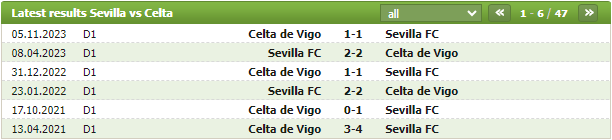 Lịch sử thi đấu của Sevilla vs Celta Vigo