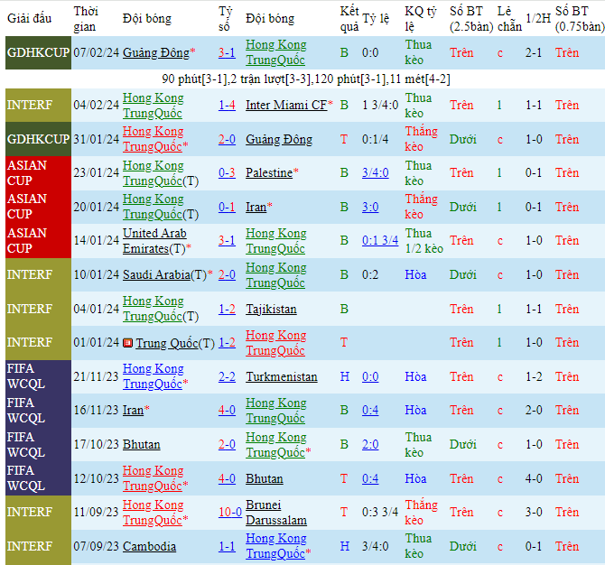 Phong độ đội bóng Hong Kong vs Uzbekistan
