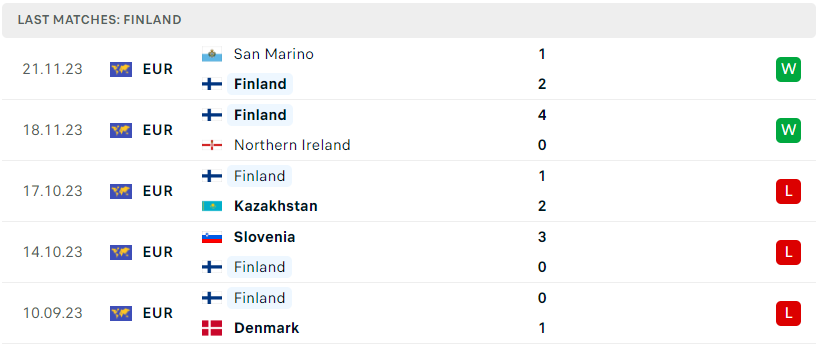 Phía bên kia, đội tuyển Phần Lan cũng vừa trình diễn một bộ mặt đầy chói sáng tại vòng loại Euro lần này, sau 10 lượt trận tập thể này cũng đã thành công mang về 6 chiến thắng và chỉ nhận về 4 thất bại trong số đó. Một lối đá gắng kết cùng với tinh thần quyết tâm và những dẫn dắt thông minh của nhà cầm quân Markku Kanerva đang giúp Phần Lan tiến bộ một cách vượt bậc trong những năm qua. Thế nhưng, vẫn còn quá sớm để nhận định mọi thứ và chuyến hành quân đến Wales được xem là bài test lớn dành cho họ.