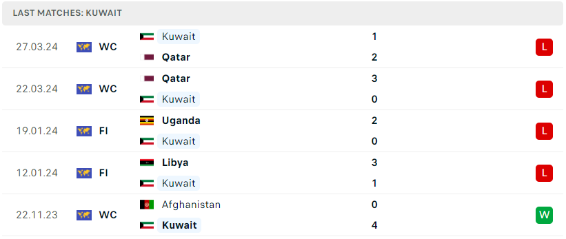 Phong độ của Kuwait