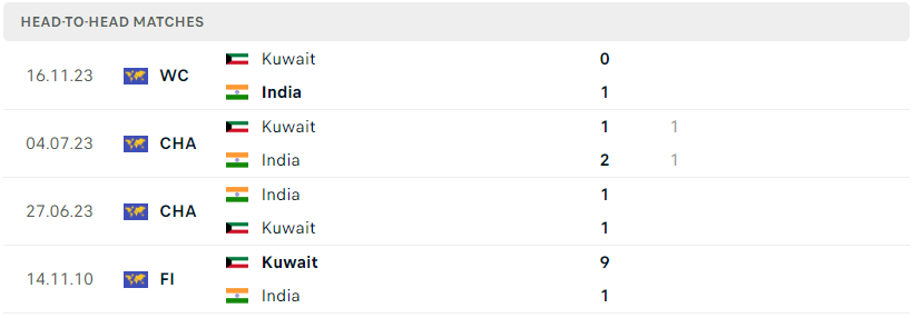 Thành tích đối đầu của Ấn Độ vs Kuwait