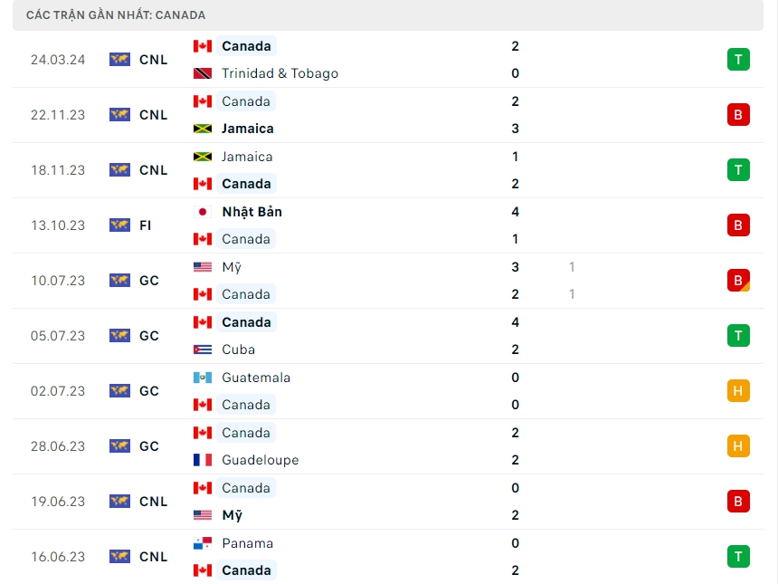 Phong độ đội bóng Hà Lan vs Canada