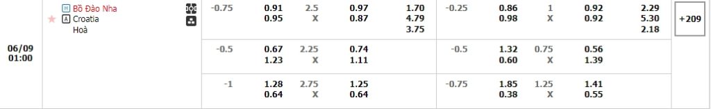 Kèo châu Âu cũng sẻ là ưu thế cho các cầu thủ Chủ nhà khi mức ăn của họ đang là 1.70 và các cầu thủ Croatia đang là 4.79. Việc lịch sử đối đầu đang ủng hộ các cầu thủ chủ nhà, Bồ Đào Nha luôn được xem là đối thủ Kỵ dơ với Croatia trong nhiều năm trở lại đây thì một chiến thắng nữa là điều mà chủ nhà Bồ đào Nha đang hướng đến.