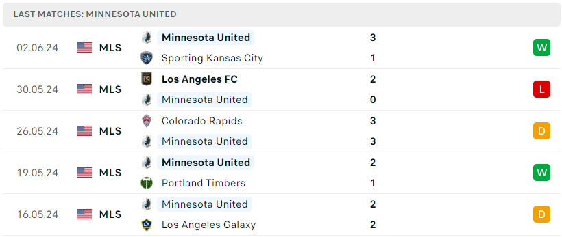 Phong độ của Minnesota United
