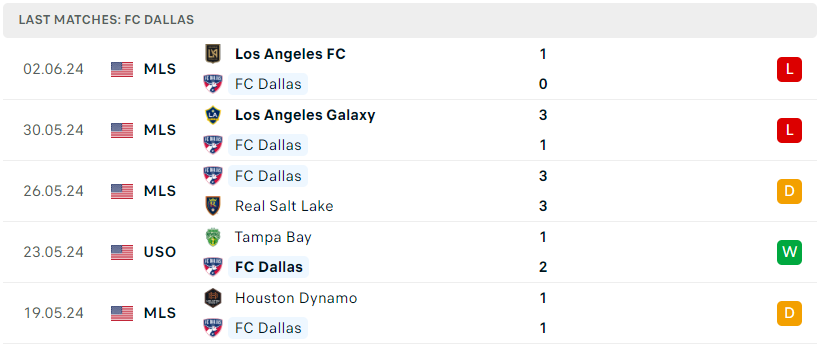 Phong độ của FC Dallas