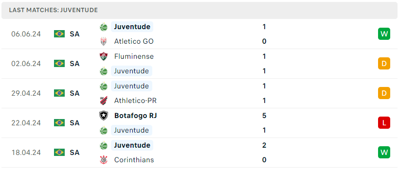 Sự khó lường của tân binh Juventude RS một lần nữa được thể hiện qua chiến thắng tối thiểu trước Atletico GO ở vòng đấu trước. Với kết quả này, đoàn quân Marquinhos Santos vẫn đang duy trì thành tích bất bại 5/6 trận đấu đầu mùa. Thử thách tiếp theo dành cho họ sẽ là màn tiếp đón một tân binh khác Vitoria BA. Một cơ hội quá tốt để Juventude tiếp tục nối dài mạch bất bại.