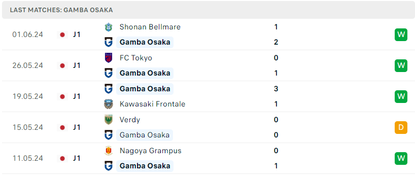 Sức mạnh của Gamba Osaka mùa này tiếp tục được thể hiện với chiến thắng trước Shona Bellmare ở vòng đấu trước. Có thể nói, Gamba Osaka chính là “hiện tượng” tại JLeague sau nửa mùa giải. Sau trận chiến với Fukushima Utd vào giữa tuần, đoàn quân Dani Poyatos sẽ tiếp tục cuộc hành trình với màn tiếp đón Kashiwa. Một đối thủ tương đối nhẹ ký và đây sẽ là cơ hội tốt để họ tiếp đà thăng hoa.