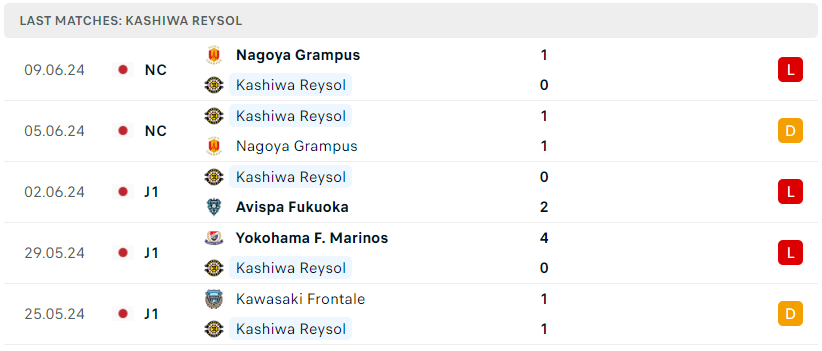 Phong độ đội bóng Gamba Osaka vs Kashiwa Reysol