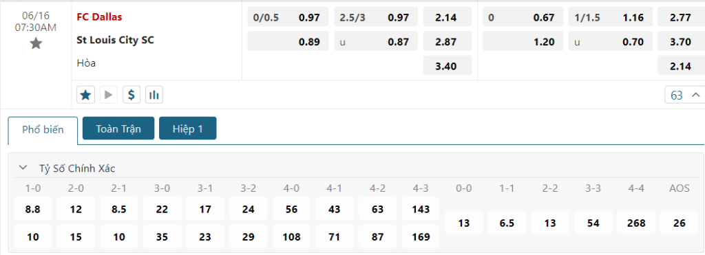 Lợi thế mang tên sân nhà đang là điều kiện để FC Dallas tiếp tục nhận lấy sự ưu ái ở kèo Châu Âu, khi mức ăn của họ là 2.14 và con số này của vị khách là 2.87. Có thể thấy, dù thi đấu cập rập là vậy nhưng mỗi khi được trở về sân nhà quen thuộc, FC Dallas luôn mang đến sự an tâm tuyệt đối. Do đó, một St. Louis không hơn không kém về phong độ sẽ không thể cản bước được Dallas.
