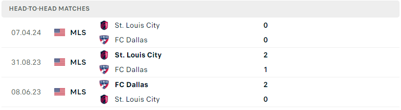 Thành tích đối đầu của Dallas vs St. Louis City SC