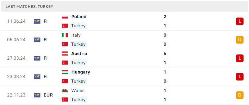 Phong độ đội bóng Thổ Nhĩ Kỳ vs Georgia