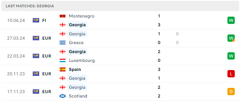 Bên kia, Georgia lại bước đến VCK Euro 2024 lần này theo một kịch bản không thể cảm xúc và đặc biệt hơn với việc giành vé từ vòng play-off. Đội tuyển Georgia dưới sự dẫn dắt của HLV Willy Sagnol đã có những bước nhảy vọt về sức mạnh trong những vừa qua, ngôi sao đáng chú ý nhất của đội bóng này có lẽ là thủ thành Mamardashvili hiện đang chơi tại Valencia. Kỳ Euro đầu tiên của đội tuyển này và họ hứa hẹn sẽ là ẩn số khó lường cho 3 đối thủ còn lại tại bảng F.