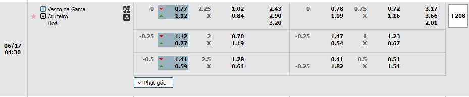 Dù phải thi đấu xa nhà nhưng với phong độ cùng thực lực được đánh giá nhỉnh hơn nên không ngạc nhiên khi Cruzeiro không chịu bất kỳ sự thua thiệt nào trong trận đấu này qua mức kèo đang niêm yết là đồng banh . Vasco có được ưu thế sân bãi nhưng lại đang có những màn trình diễn không tốt thời gian qua, hơn nữa lịch sử đối đầu cũng đang đánh giá thấp Vasco khi họ chỉ có được 1 chiến thắng, 2 hòa và 2 thất bại ở 5 trận đã qua, bên kia sân Cruzeiro đang có được sự tự tin cần thiết sau những trận đấu tốt họ vừa trải qua, sân khách cũng là nơi mà Cruzeiro đang chơi tốt, một trận đấu mà nếu thi đấu đúng sức thì Cruzeiro hoàn toàn có thể hướng đến 3 điểm cho mình.