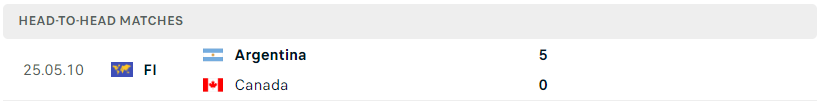 Thành tích đối đầu của Argentina vs Canada