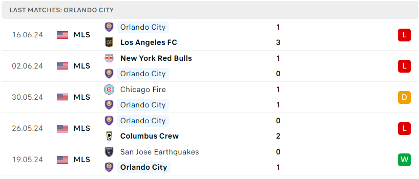 Phong độ đội bóng Orlando City vs Chicago Fire