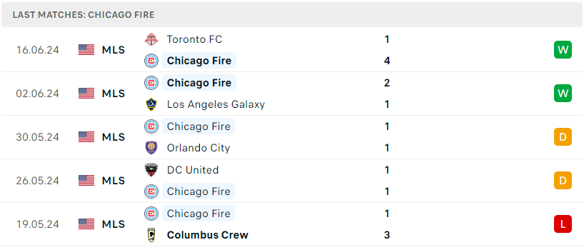 Phong độ của Chicago Fire