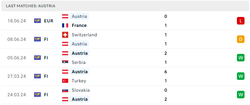 Trong 10 trận đấu gần nhất tại giải vô địch Châu Âu, chiến thắng 3-1 của Áo trước Bắc Macedonia là lần duy nhất mà họ ghi nhiều hơn 1 bàn/trận. Trận thua tối thiểu của đội bóng Ralf Rangnick trước người Pháp ít ngày trước cũng cho thấy họ không hề dễ bắt nạt. Do đó, sẽ rất khó để Hà Lan có thể áp đặt lối chơi lên đối thủ, khả năng nổ tài là rất thấp.