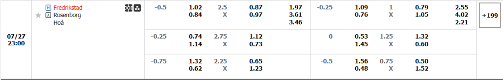 Soi kèo Châu Á, kèo chấp Fredrikstad vs Rosenborg