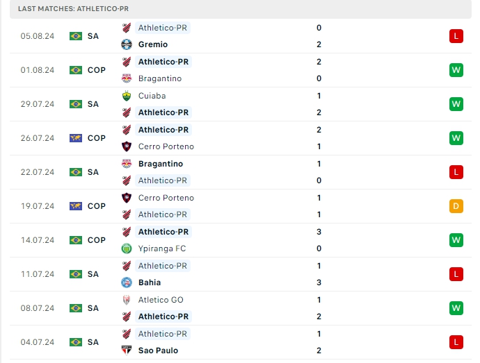 Trong khi đó với Athletico-PR, họ vừa nhận thất bại trước Gremio, trận thua này chấm dứt chuỗi 3 trận toàn thắng trước đó, trải qua 19 lượt trận với 28 điểm có được,Athletico-PR có được vị trí thứ 8 trên BXH, hàng công của Athletico-PR chơi không tốt khi chỉ mang về 22 bàn thắng, trong khi hàng thủ nhận 20 bàn thua, 5 trận gần nhất phải thi đấu xa nhà, hàng công của Athletico-PR có cho mình chỉ 6 bàn thắng và hàng thủ nhận 4 bàn thua. 3/5 trận đấu đó khép lại không quá 2 bàn thắng được ghi.
