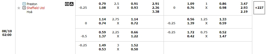 Bảng tỷ lệ kèo bóng đá trận đấu Preston North End vs Sheffield Utd