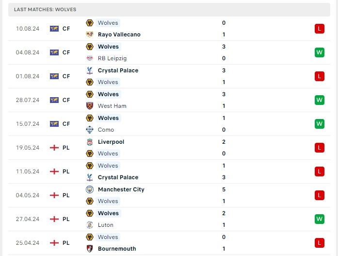 Trong khi đó với Wolves họ khép lại chiến dịch mùa giải vừa qua ở vị trí thứ 14 trên BXH, lối chơi của bầy sói đã không còn thực dụng mà đã thiên về tấn công rất nhiều khi họ có được 50 bàn thắng ở mùa giải vừa qua, tuy vậy việc dâng cao cũng khiến hàng thủ trở nên mong manh với 65 bàn thua, ở những trận giao hữu vừa qua, Wolves có được 8 bàn thắng cùng 5 bàn thua sau 5 trận đấu, khi thi đấu xa nhà Wolves ở 5 trận đấu gần nhất mang về 5 bàn thắng và hàng thủ chơi tệ khi nhận đến 13 bàn thua.