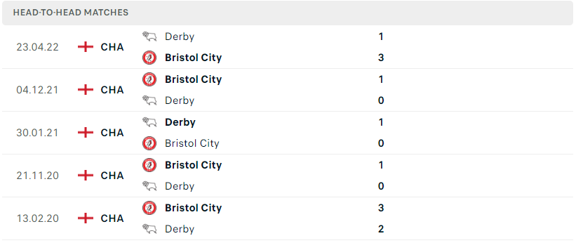 Dù ở 2 cuộc chạm trán gần nhất tại mùa giải 2021/22 thì Bristol City đã toàn thắng trước Derby County, tuy vậy nhưng đó là câu chuyện của quá khứ và với 2 mùa giải chơi tại League One thì The Rams đã tiến bộ đáng kể. Một thời điểm mà Derby County đang chơi cực bay trên sân nhà thì sẽ chẳng có lý do gì họ lại xảy chân trước một Bristol City không hề mạnh mỗi khi phải thi đấu xa nhà.